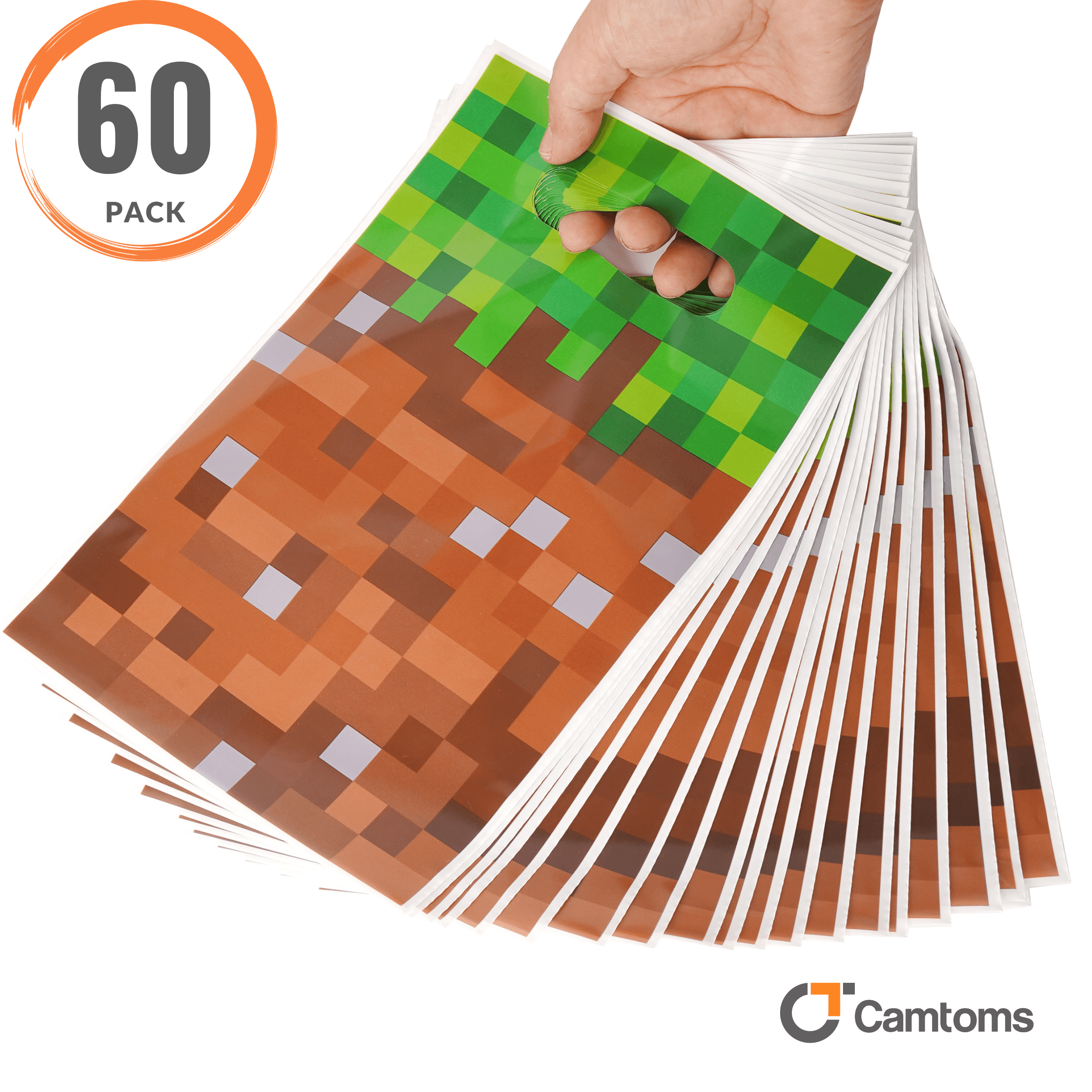 • Package Contents: Includes 60 pixelated goody bags measuring 6×10 inches; perfect size for holding candy, small toys, and party favors; durable plastic construction with convenient handles for easy carrying